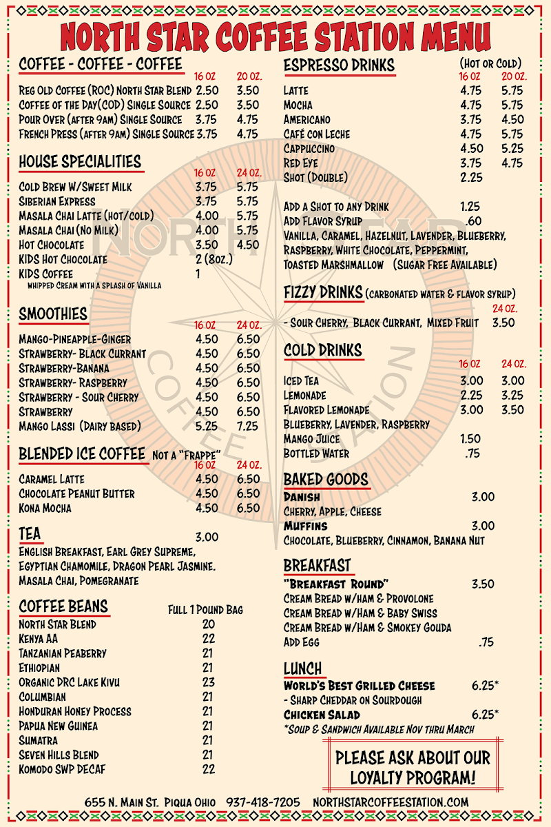 Welcome to the North Star Coffee Station, a charming haven located at 655 N Main St, Piqua, OH. Known for its inviting atmosphere and exceptional service, this family-owned gem offers a delightful menu that caters to coffee aficionados and casual visitors alike.